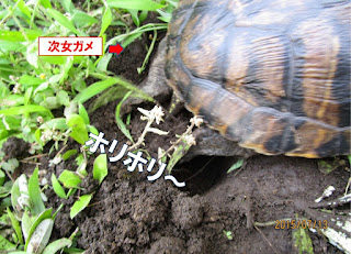 次女ガメがホリホリ場所に選んだのは・・